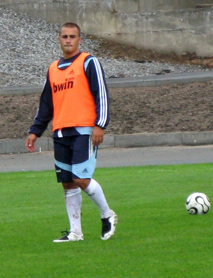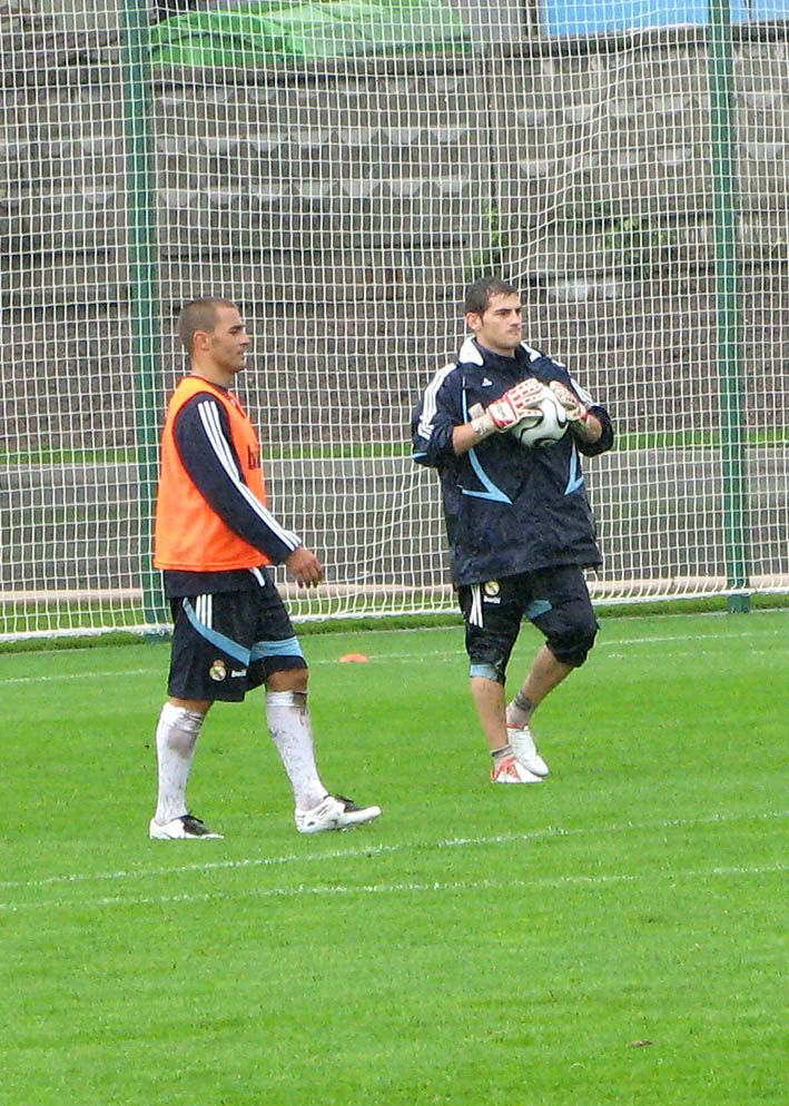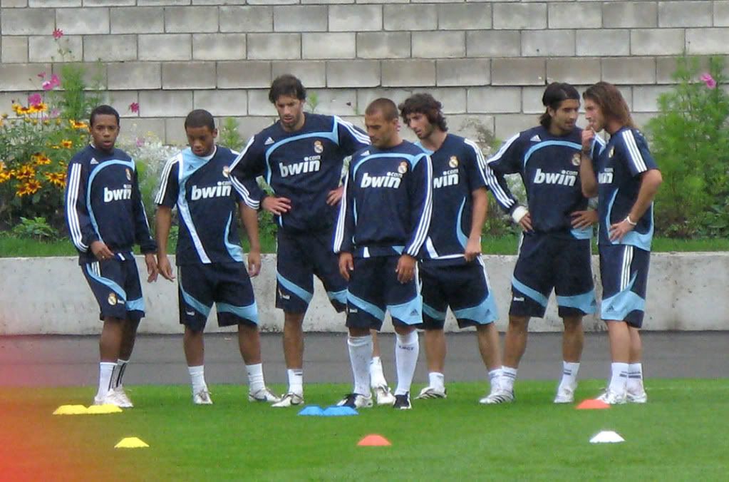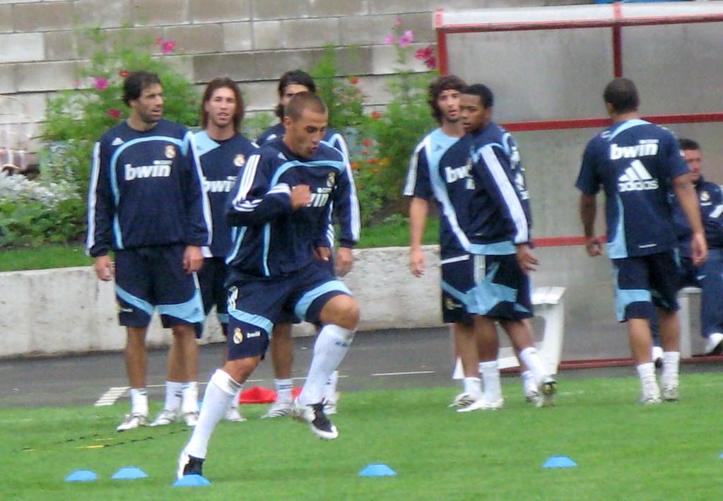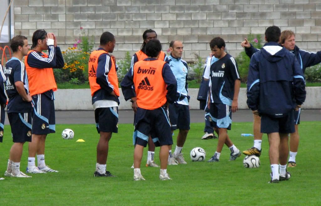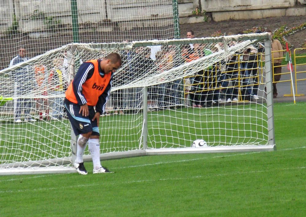 Тренировка проходила на каком-то запасном поле стадиона Локомотив. Его огородили заборчиком, и за ним толклись толпы народу! Черт, хотелось бы, чтоб людей было поменьше. Ну да ладно, мы, в конце концов, очень даже неплохо устроились, прям возле заборчика. Реаловцы выглядели так, словно полночи пили горькую и развлекались. В общем-то, так оно и было : ) Больше всех погулял, судя по виду, Каннаваро. Он полтренировки подпирал ворота и практически спал: ) Но иногда даже бегал, чем вызывал удивление даже у партнеров по команде :) И даже пару раз ударил по мячу. Но все же большую часть тренировки он провел, подпирая ворота Икера, болтая с одноклубниками и заглядываясь на девушек: ) Остальные вроде бы тренировались чуть поактивнее. Смотреть было интересно, во всяком случае.