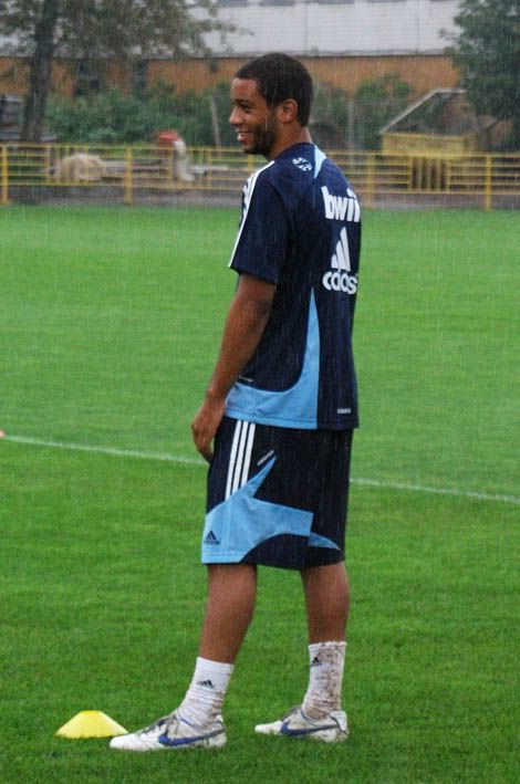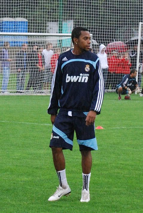 В общем-то, тренировки у Реала довольно живенькие. Сперва они просто поразминались, потом стали играть один на одного, двое надвое и так далее, пока не образовали две команды и не сыграли миниматч. Единственное неудобство доставлял дождь. Игроки вымазались все с ног до головы, а мы вынуждены были прибегать просто к акробатическим этюдам, чтобы их фотографировать и не замочить фотоаппараты. Тут уж мы все втроем постарались! Зато фото, не смотря на погоду, получились очень даже ничего! Особенно вот эти «братья-близнецы», которые стояли совсем рядом с нами. Найдите десять отличий, называется. А это, между прочим, разные люди! :) И никакие не братья, и уж тем более, не близнецы, но похожи, как две капли дождя, ой, то есть, воды: ) Лично я так и не различаю, кто из них Робиньо, а кто Марсело. Был еще забавный момент, когда Серхио слишком сильно запульнул мяч, и тот перелетел через заградительную сетку. Мяч сразу же подхватили толпящиеся там зрители и устроили свой миниматч :)