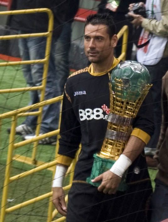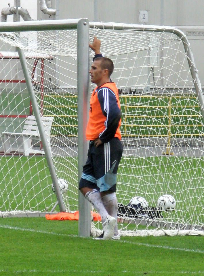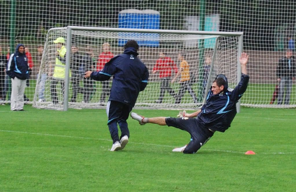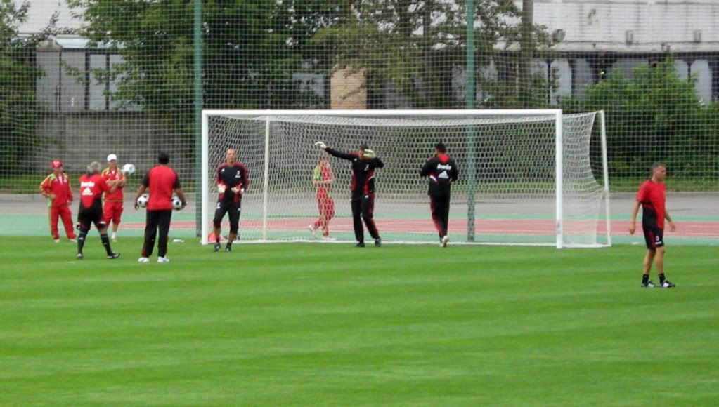 Отдельно, в своем углу с воротами, тренировались и вратари. Помощник тренера, как всегда, бил им пенальти. После ...дцатого раза пробежек из одного угла в другой, им, видимо, это надоело. Они еще немного поразминались и попинали мячики в совершенно хаотичном порядке. Паоло и Андреа, при этом, еще били какие-то штрафные пустым воротам . Я не успела сфотографировать, к сожалению, как Андреа бил штрафной, зато успела заснять, КУДА он при этом отправил мяч :) Он провожает его грустным взглядом.