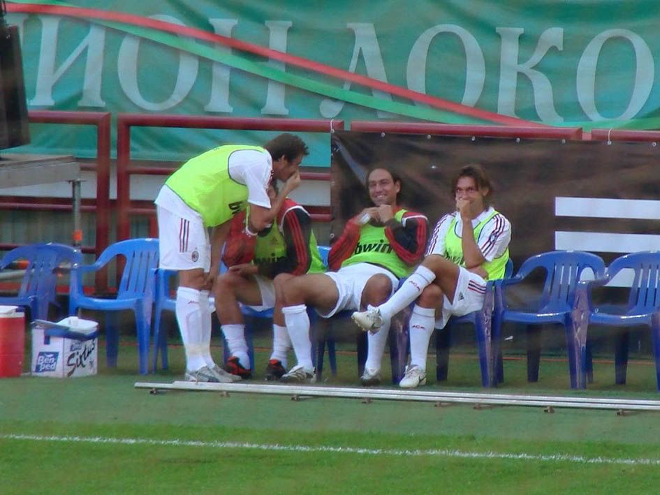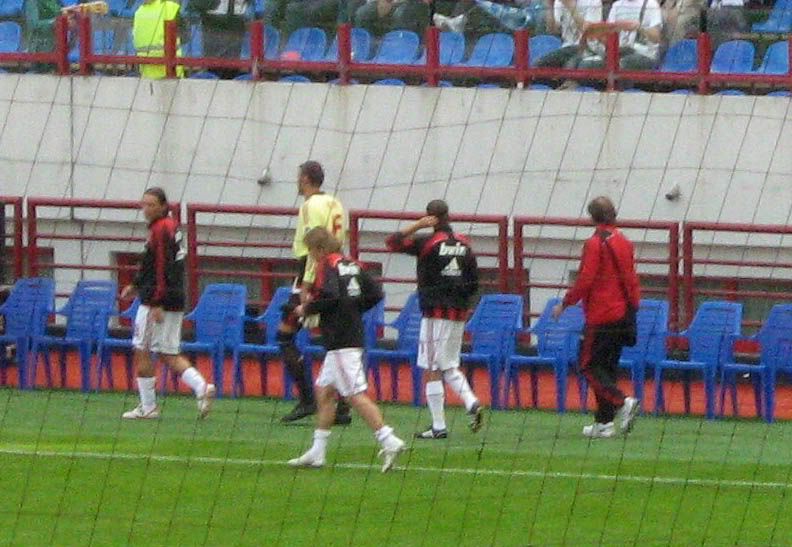 Собственно, впечатлений от игры нет никаких. Опять же, мало что видела, зато много болела. И в тот момент расстроилась такому результату. Впрочем, миланцы тоже расстроились, наверное. Судя по оправдывающемуся Калачу, злобному Рино, которому даже дождь ни почем был в тот момент, и расстроенным Папе Карло и Паоло. Что ж, действительно жаль, надеюсь, в сезоне они так жутко играть не будут.