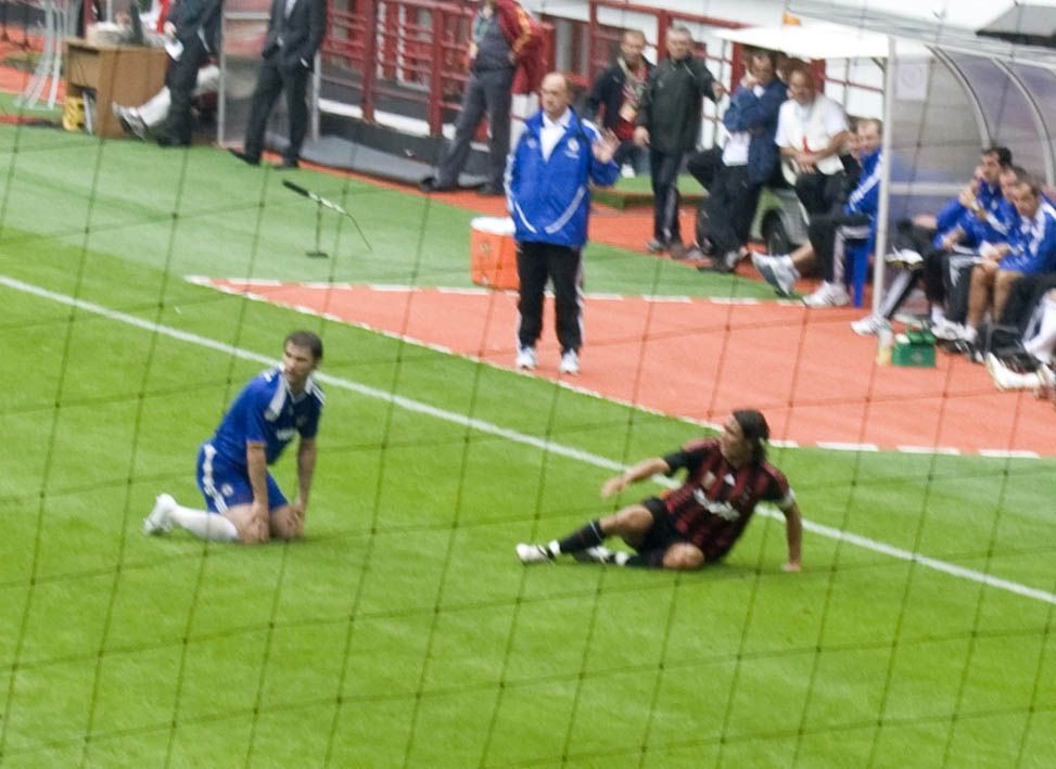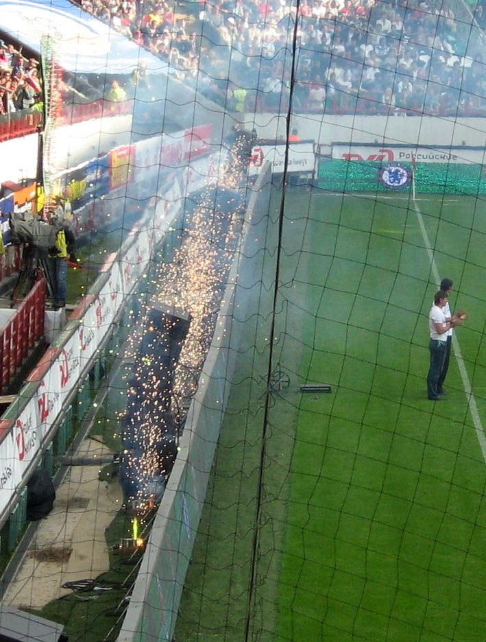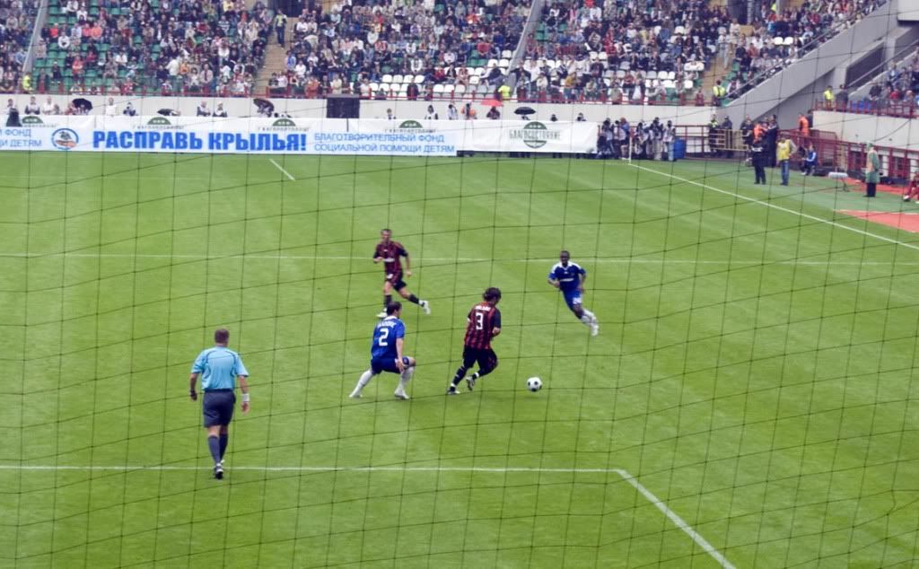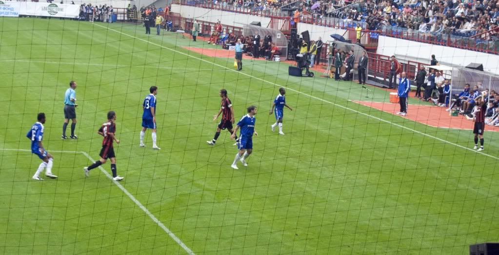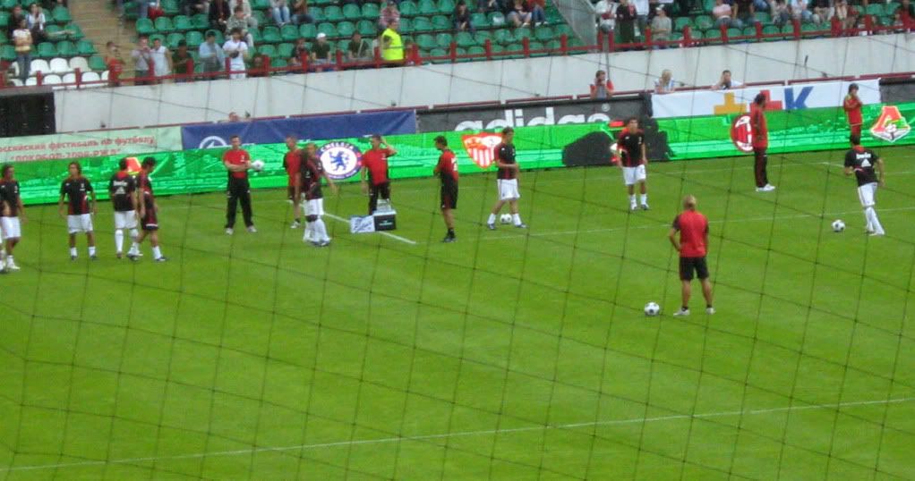 В последний день моего пребывания в Москве, мы, как обычно, встали не слишком рано, собрались не слишком торопливо и отправились на стадион. Честно говоря, мы не рассчитали время и приехали, когда матч должен был вот-вот начаться. Девочки уже были на стадионе. Терпеть не могу опаздывать, поэтому я поспешила в свой сектор. Там уже собрались почти все. Пару минут спустя пришли Мэй и Оля, с которой мы еще не виделись. А спустя еще пару минут начался этот жуткий матч, в котором Милан, как начал пропускать на шестой минуте, так это и продолжалось весь матч. Не люблю, когда они так проигрывают. Конечно, мозгом-то понимаю, почему они так, да и вообще, что не будут они сильно напрягаться ради победы в каком-то товарняке. Но все равно, так хотелось, чтоб забили хоть один. Видно, не судьба. Ну да ладно. Болели мы в этот раз еще лучше, чем в предыдущий! Уж, по крайней мере, болельщиков Челси заглушили окончательно и бесповоротно! В отличие от того, что происходило на поле... Один гол за другим. Не зря все же, терпеть не могу Анелька :( А потом еще кто-то свалил нашего Капитана! УУУУУУУУУ!!!