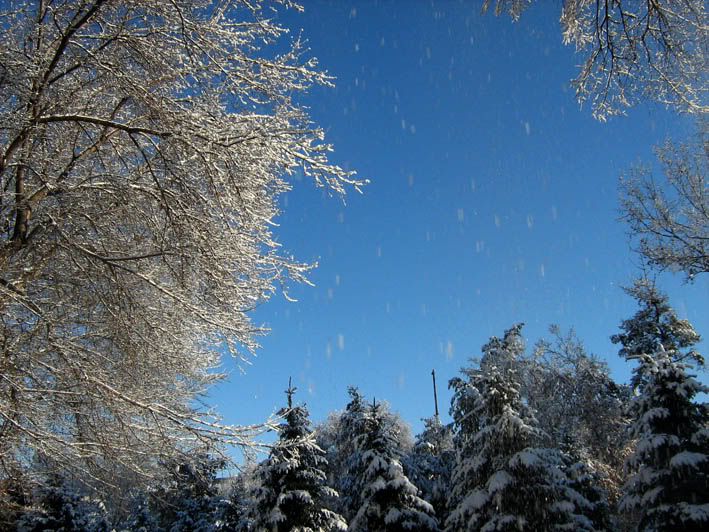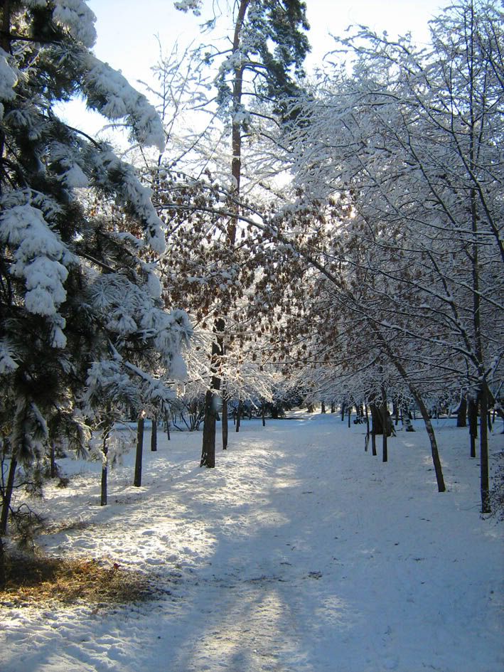Алмата встретила нулем градусов и ярким солнцем, красиво отражающимся в свежевыпавшем снеге. На этот раз я не стала изобретать бином ньютона и отправилась гулять тем же путем, что и в прошлый. Мне, конечно, хотелось бы куда-нибудь там на Медео, но я прекрасно понимаю, что те несколько часов до самолета не самое подходящее время для дальних походов. Зато я доплелась до очень симпатичного скверика и там просто зависла. Уселась, точнее, почти улеглась на скамеечку и часа два наблюдала, как осыпается снег с деревьев на фоне ярко синего неба! Просто какое-то гипнотизирующее зрелище!