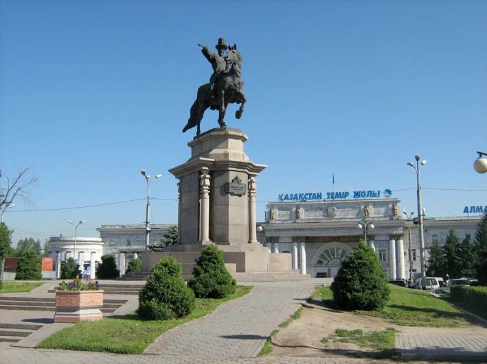 Маршрут наметила заранее. Куда-то далеко, например, на Медео или на Кок-тобе, где находится памятник Битлам, у меня, к сожалению, поехать не получилось. На это нужно совершенно отдельное путешествие, которое, я надеюсь, еще впереди. А пока решила побывать в центре города. В нескольких остановках от вокзала находится так называемая Площадь Республики. Мне она памятна еще со времен увлечения радио «Европа плюс», так как там находится ее студия. Вот туда и отправилась.