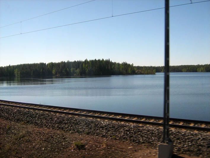 Утречком пришлось встать пораньше, так как граница намечалась часов на девять. Заняться, собственно, было нечем, кроме гляделок на окружающий поезд мир. Пару раз к нам приходила в гости Ира из соседнего вагона, а потом пришли и пограничники. Сначала российские, через какое-то время – финские. Финский мальчик так кошмарно говорил по-английски, что я его решительно не понимала. Слава богу, у меня есть Катя! :)