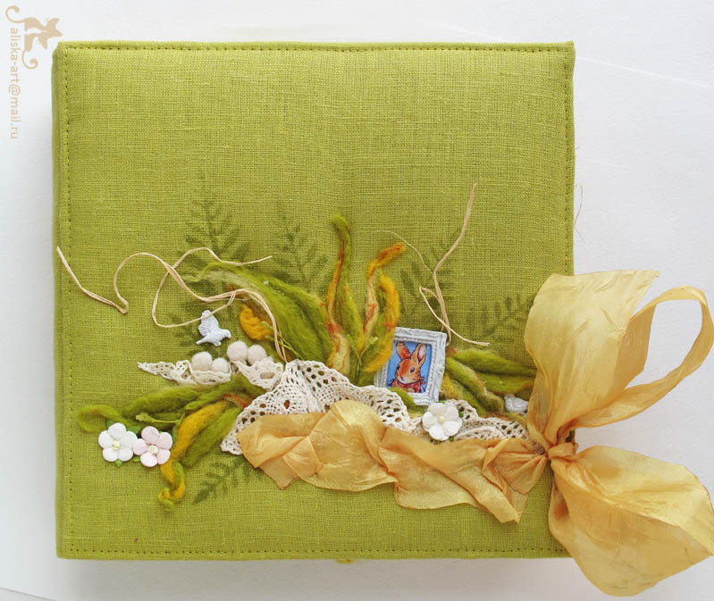 Первый разворот, вернее нулевой - вы его еще не видели. По функционалу тут все просто - рамочка для фото справа. А слева на форзаце карман на всю ширину и на кармане книжечка. Там первые строки сказки: "Жили-были в одном лесу четыре крольчонка по имени Флопси, Мопси, Ватный Хвост и Питер. Жили они со своей мамой крольчихой на высоком песчаном берегу в кроличьей норке под корнями высокой ели... и т.д." :) |
