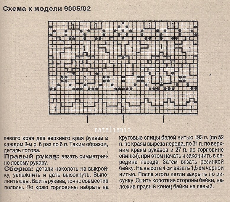Узор спицами "двухцветные зигзаги" для вязания свитера, кардигана, шапки: