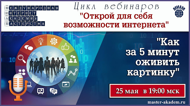 Сегодня в МИАМ состоится вебинар, на котором, в прямом эфире, ведущая вебинара Ирина Ческидова покажет как с помощью программ - графических редакторов оживить картинки. Я предполагаю, что Ирина к показу в прямом эфире подготовила убойный материал! Если интересно - приходите.