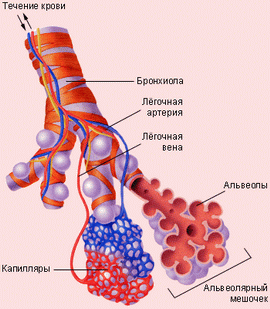 По артериям малого круга кровообращения в лёгкие поступает венозная кровь, которая обогащается здесь кислородом и становится артериальной. Одновременно венозная кровь освобождается от углекислого газа, который проникает в лёгочные пузырьки и во время выдоха выводится из организма. Далее уже артериальная кровь по сосудам большого круга кровообращения движется по направлению к органам тела и обогащает их ткани кислородом. Кислород необходим для процессов жизнедеятельности клетки. При этом образуется углекислый газ, поступающий из клеток тканей в кровь, в результате чего кровь из артериальной становится венозной. Поступление воздуха в лёгкие происходит автоматически под влиянием нервной системы в результате дыхательных движений – вдоха и выдоха, которые осуществляются с помощью межрёберных мышц и диафрагмы (мышечной перегородки, разделяющей грудную и брюшную полости). Остановка дыхания является одной из распространённых причин смертей из-за несчастных случаев, например, при утоплении. Постарадавшего необходимо вытащить из воды, очистить ротовую и носовую полости от песка и слизи, освободить желудок и дыхательные пути от воды. Затем нужно приступить к искусственному дыханию. Целью искусственного