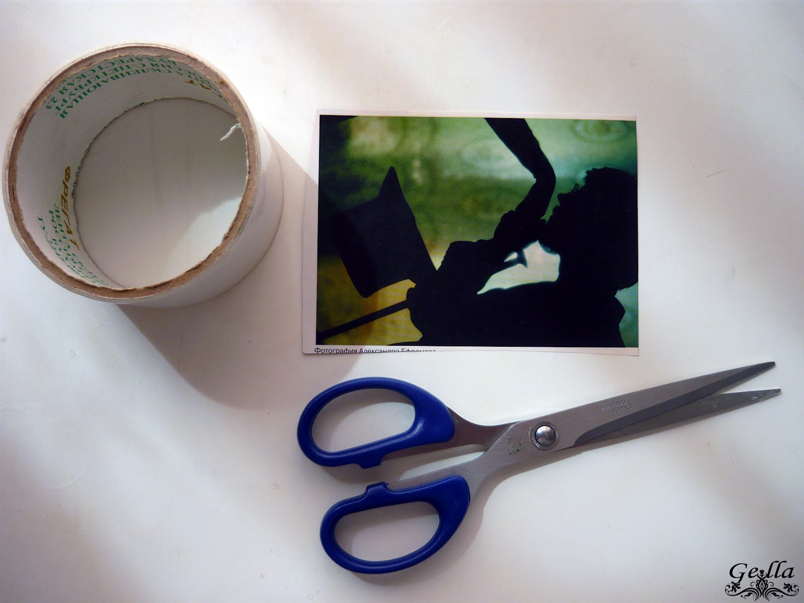 Нам понадобится картинка, скотч, ножницы и терпение))