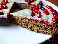 ![]() | Остывший торт перевернуть и смазать клюквенным джемом. |