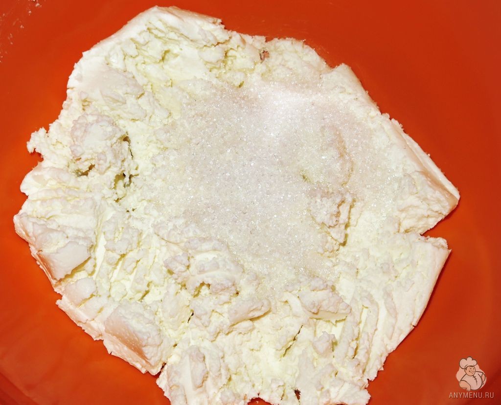 Шаг 1: В глубокой миске соединить творог, ванилин и сахар.