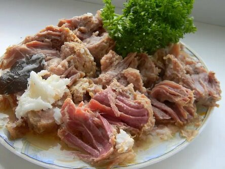 Чтобы тушенка получилась вкусной, важно взять свежайшее, нежирное мясо. Его состав можно слегка «разбавить» растопленным свиным салом, но только в умеренном количестве. Это увеличит продолжительность хранения, а еще как бы насытит блюдо.