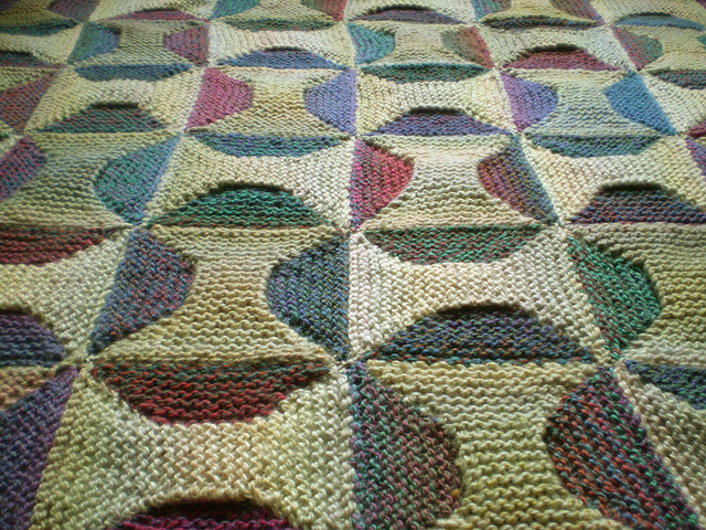 В коллекции Фрэнки Браун есть очень много интересных вязанных вещей, но, пожалуй, самые интересные из них - это разнообразные пледы. В предыдущем посте я уже рассказывала об одеяле из полосатых диагональных квадратиков, а сейчас я познакомлю вас с необычной двухсторонней моделью "Катушки" в стиле пэчворк.