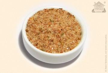 400 г. морской соли или 500 г. поваренной,1 целая головка чеснока,различные специи:укроп, петрушка, майоран, чабер, молотый кориандр, хмели-сунели, паприка, молотый чёрный острый перец. Специй требуется по одной чайной ложке каждого вида. Вы можете самостоятельно регулировать количество специй. Например, можно уменьшить количество острого перца и увеличить количество паприки или иным образом изменить рецептуру по вашему вкусу.