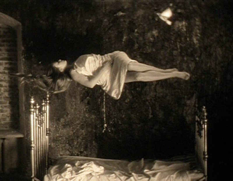 Заикающегося студента гипнотизируют, чтобы вылечить его недуг. По полю дует сильный ветер. По стенам течет вода и с потолка падает штукатурка. Птица приземляется на голову мальчика. Под дождём догорает сарай. Кадры военной хроники. Мужчина сжимает в руке несколько перьев, летит птица. Ядерный взрыв атомной бомбы. Спящая женщина парит над своей кроватью...