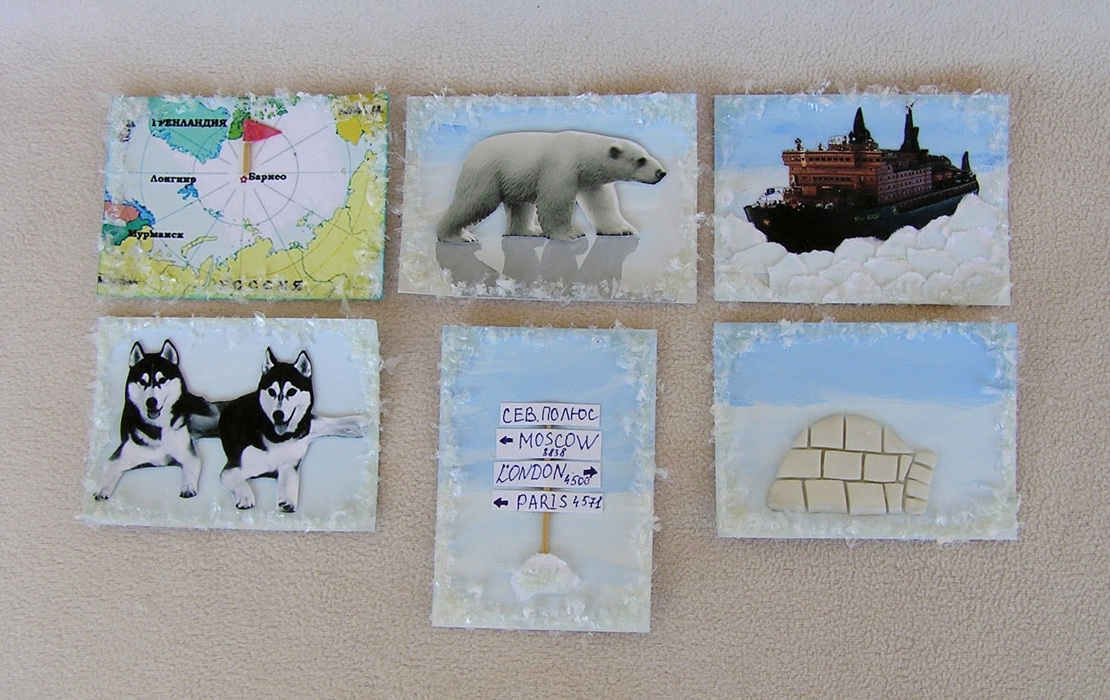 Вот так. А теперь фото работ. Со мной участвовали две девочки, одна с украшениями из бисера, вторая с бижутерией из пластики и открытками.