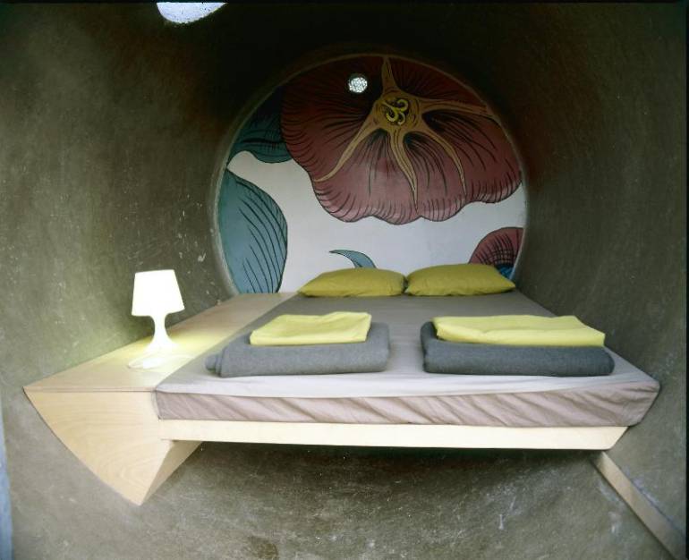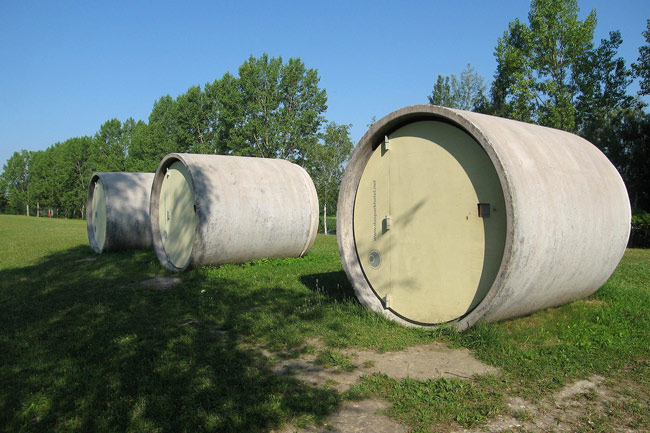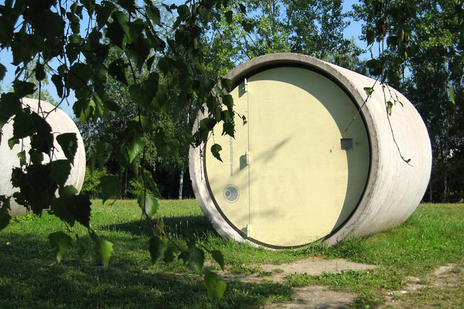 Посетителям предлагают остановиться в трубообразных комнатах, расположенных на территории городского парка. Номера снабжены двуспальными кроватями и электричеством.