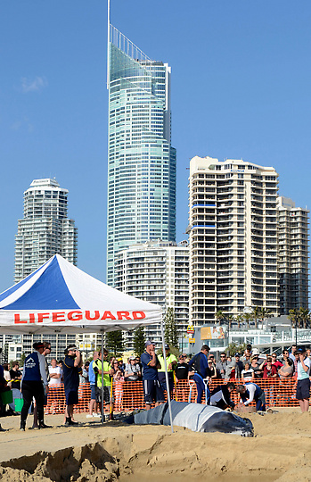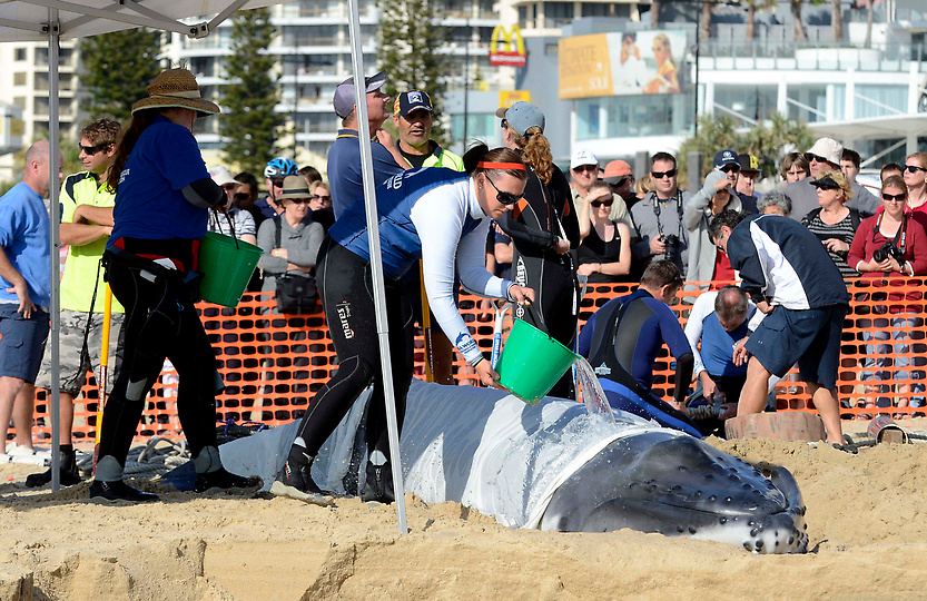 Специалисты центра изучения морских глубин Квинслендского подразделения общества охраны окружающей среды бросили все силы на спасение китенка, постоянно поливая малыша водой.