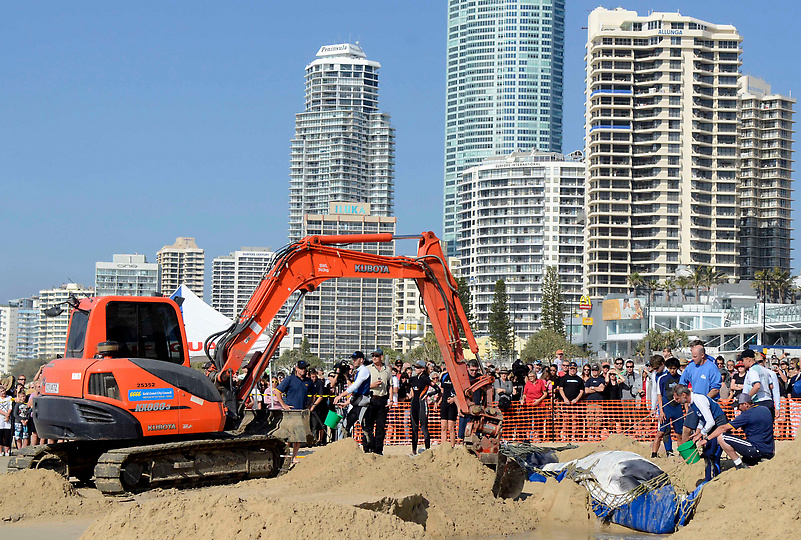 Детеныша горбатого кита, выброшенного на берег, нашли на пляже Surfers Paradise на Золотом Берегу, Австралия.