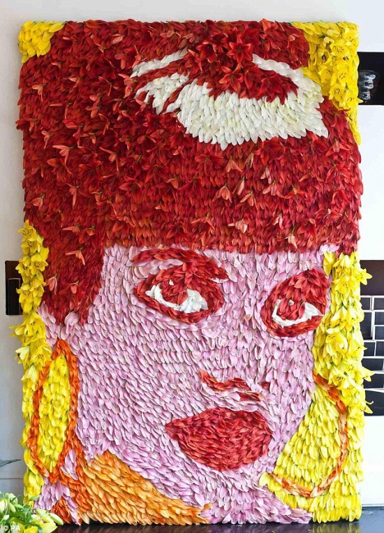 На создание портрета ушло 9 часов работы. Уникальная композиция насчитывает порядка 1800 лилий
