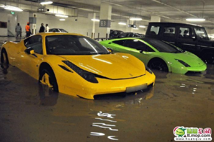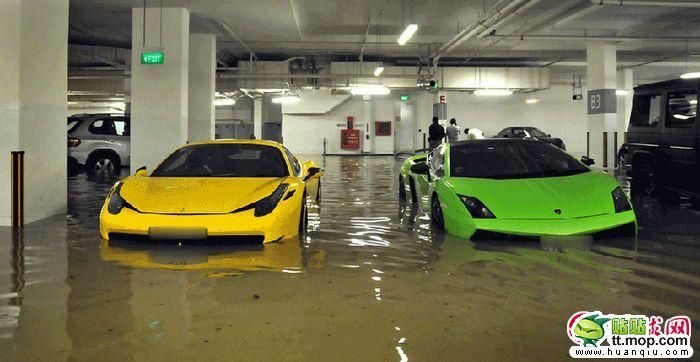 В Сингапуре затопило автостоянку. Среди утопленных иномарок оказались и броские суперкары.