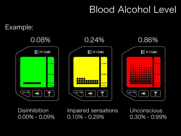 Новое изобретение под кодовым названием "Насколько ты пьян?" представляет собой часы с ЖК-дисплеем, которые позволяют определить степень алкогольного опьянения их обладателя. Эту концепцию создала японская дизайн-студия Tokyoflash.