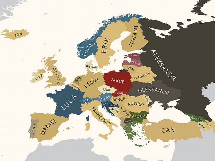 Интересная статистика по распространению имен среди пользователей социалки FACEBOOK.
