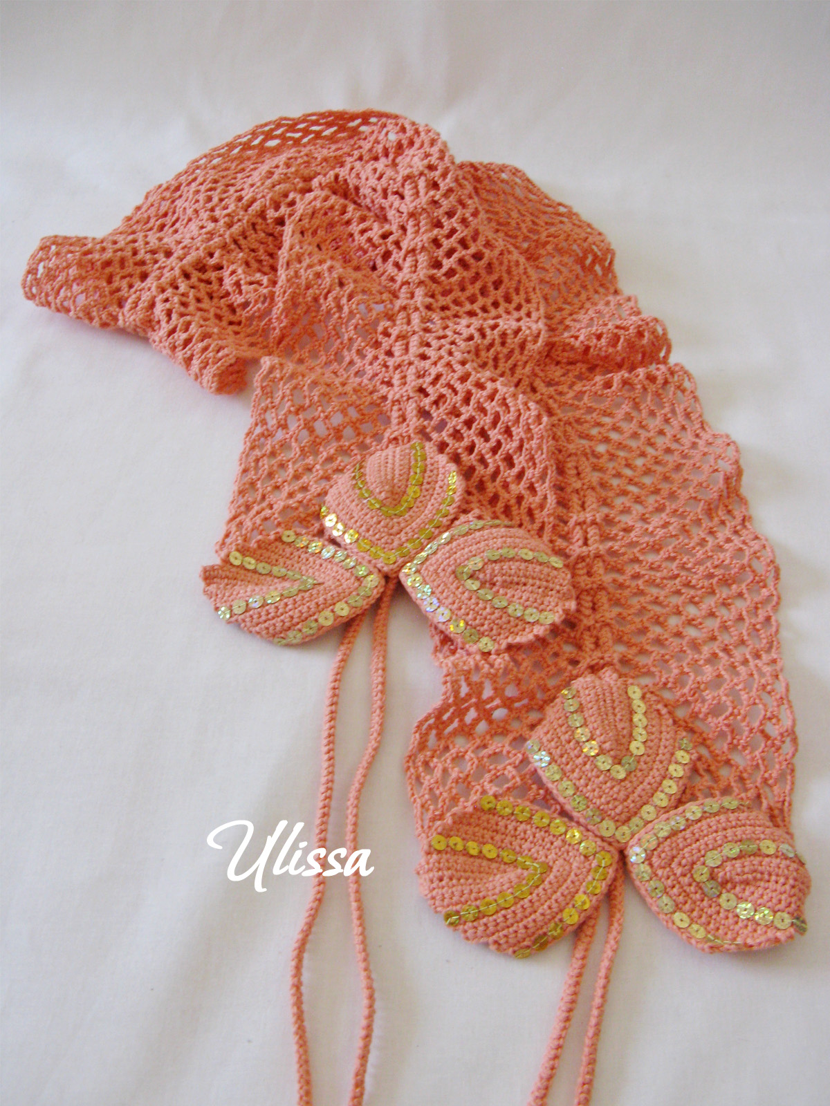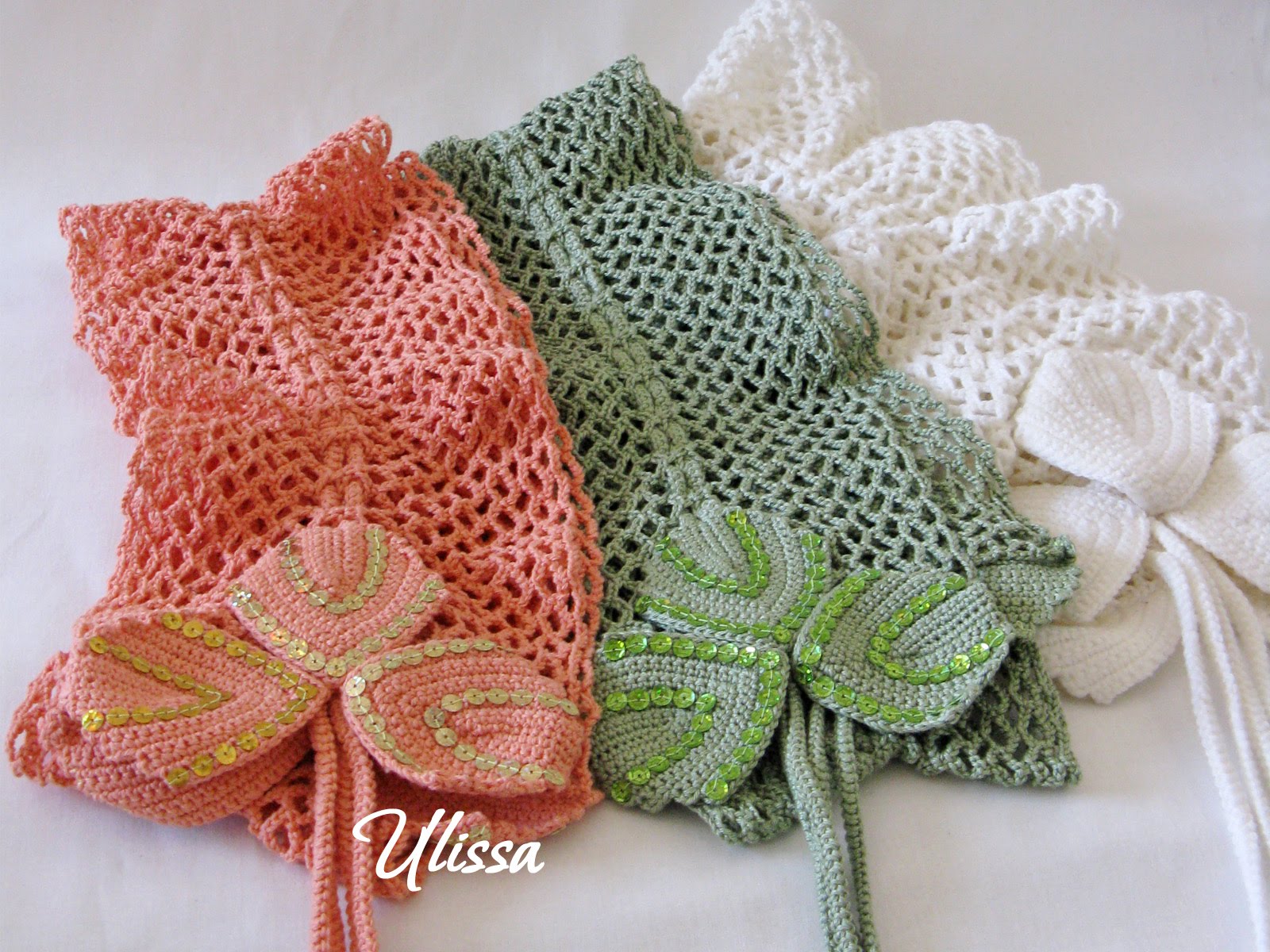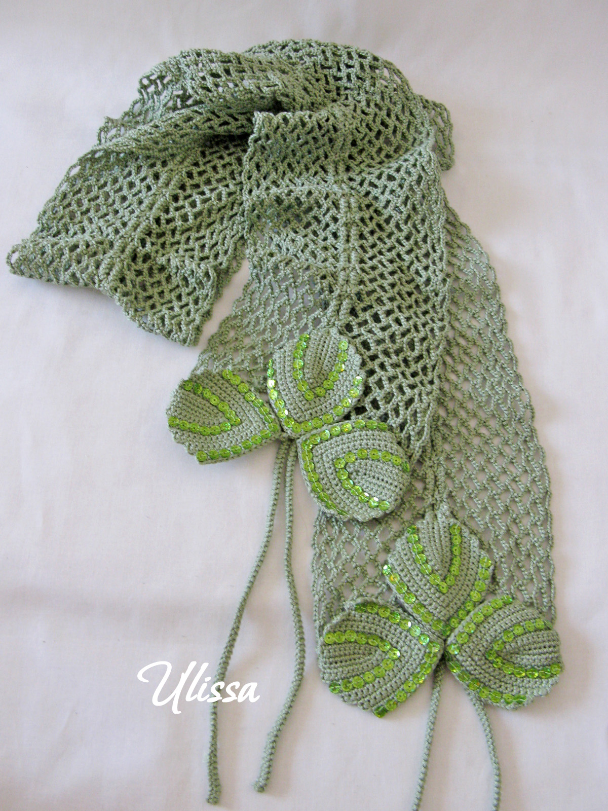 Шарфики связаны из хлопка, украшены пайетками.