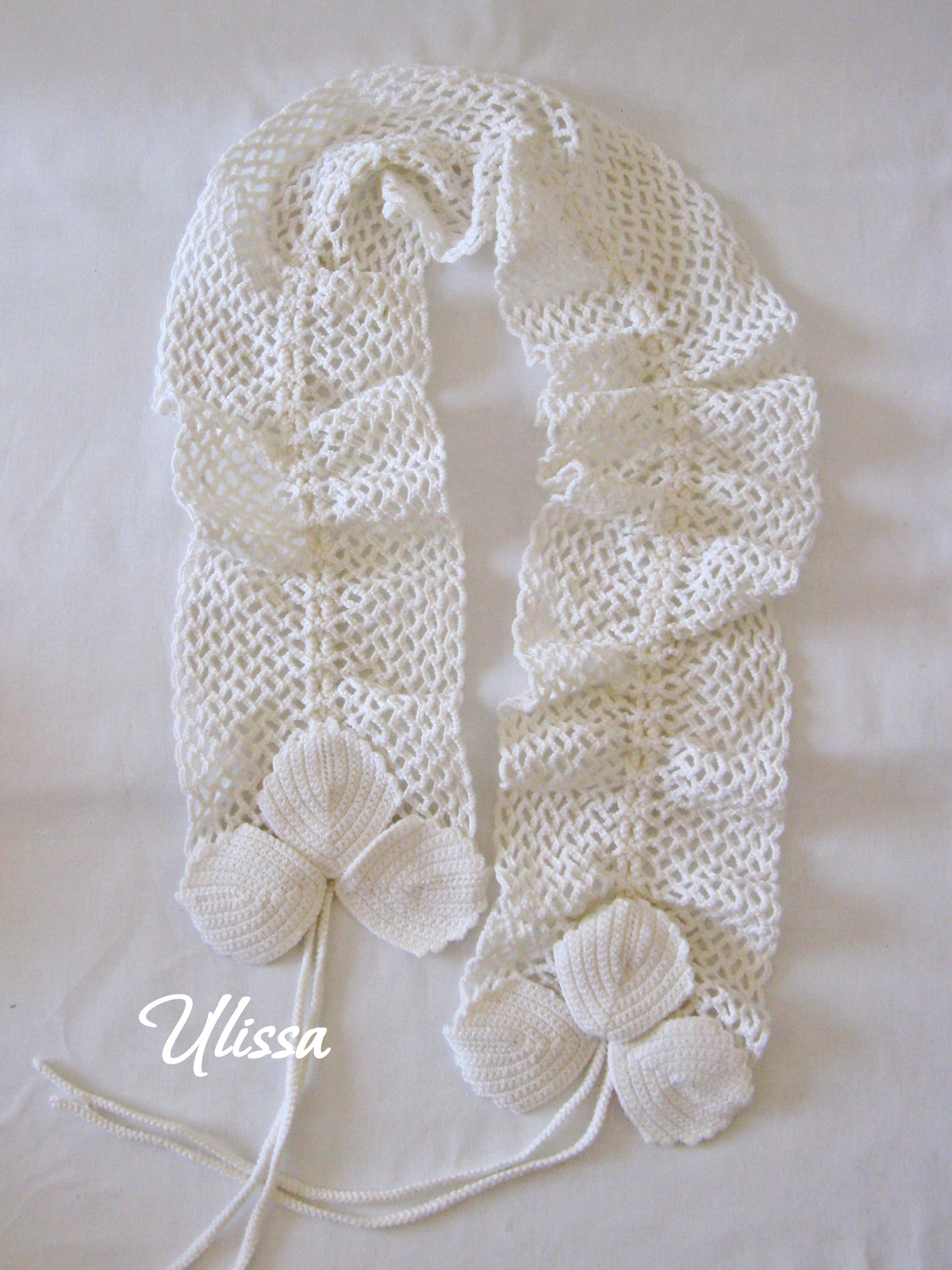 Нежные, ажурные шарфики ручной работы, украшены листьями и шнурами. Шнур можно затянуть, по желанию завязать, стянуть гармошкой.