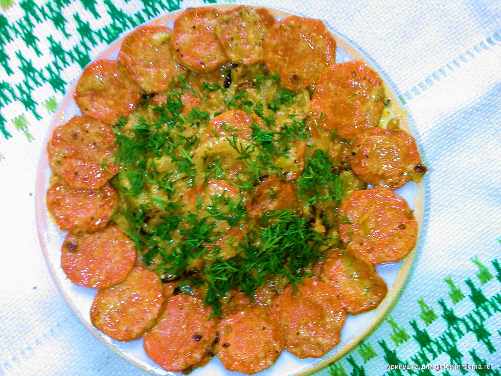 Морковь порезать кружочками и залить кипятком(молодую морковь не заливать),пусть постоит 10 мин,затем воду слить.Лук полезать кольцами.На сковороде поджарить морковь и лук( можно и без жарки обойтись,но мне так больше нравится),насыпать специи,залить молоком,посолить и потушить на медленном огне. .Получиться густенький соус.Посыпать укропом.Приятного аппетита.