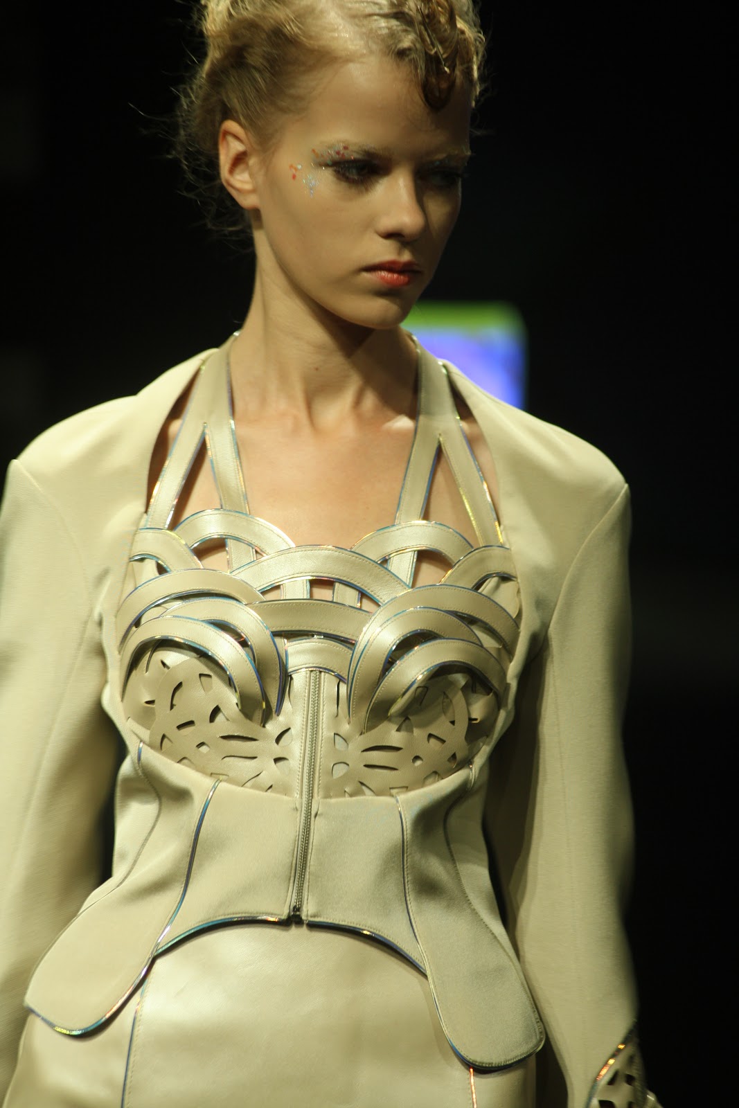 Привожу здесь лишь наиболее удачные фото моделей одежды (на которых можно что-то различить). В следующей статье я скопировала с сайтов профессиональные отредактированные фотографии и ссылки на слайдовую презентацию по каждой модели одежды, поэтому тем кто интересуется непосредственно коллекцией, а не реализмом событий, удобнее будет просмотреть следующую статью.