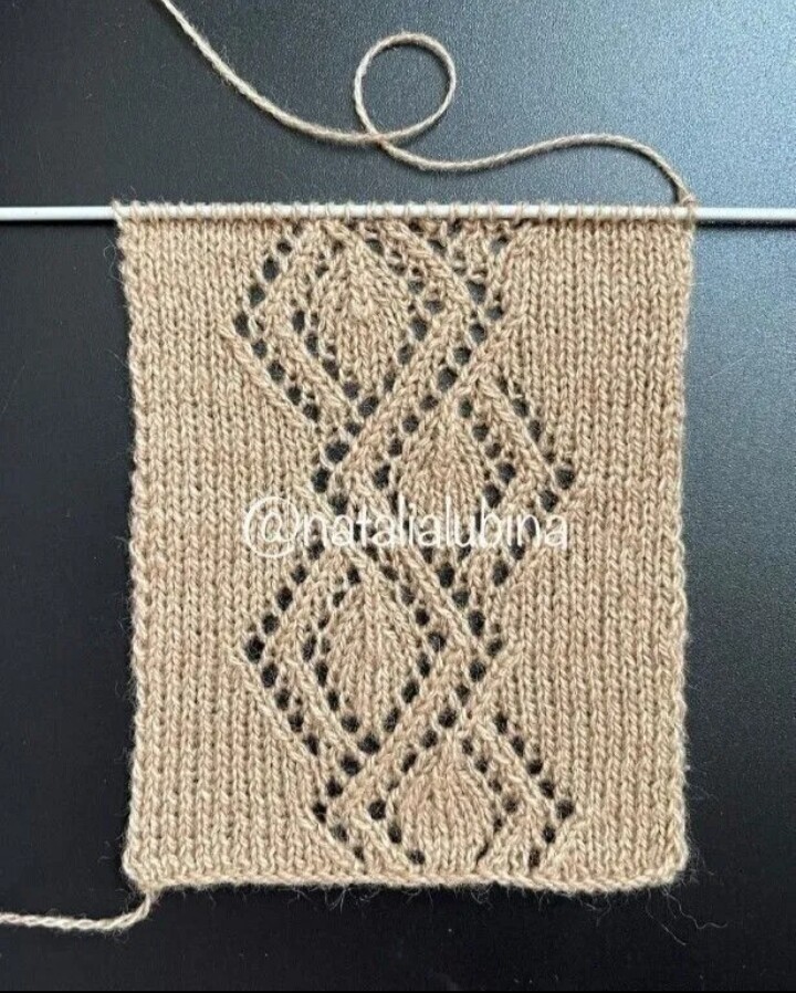 Базовый ряд с изнаночной стороны: снять петлю, *снять петлю, 1 лицевая, снять петлю, 6 лицевых, снять петлю, 1 лицевая, снять петлю, повторять от *, 1 изнаночная.