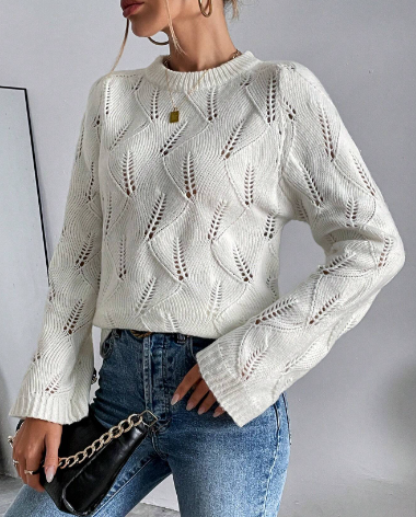 Совершенно прямая полуоблегающая модель с широким рукавом. Резинка на месте манжеты присутствует, но больше для гармонии с линией низа изделия, выполненной также резинкой 1 х 1.