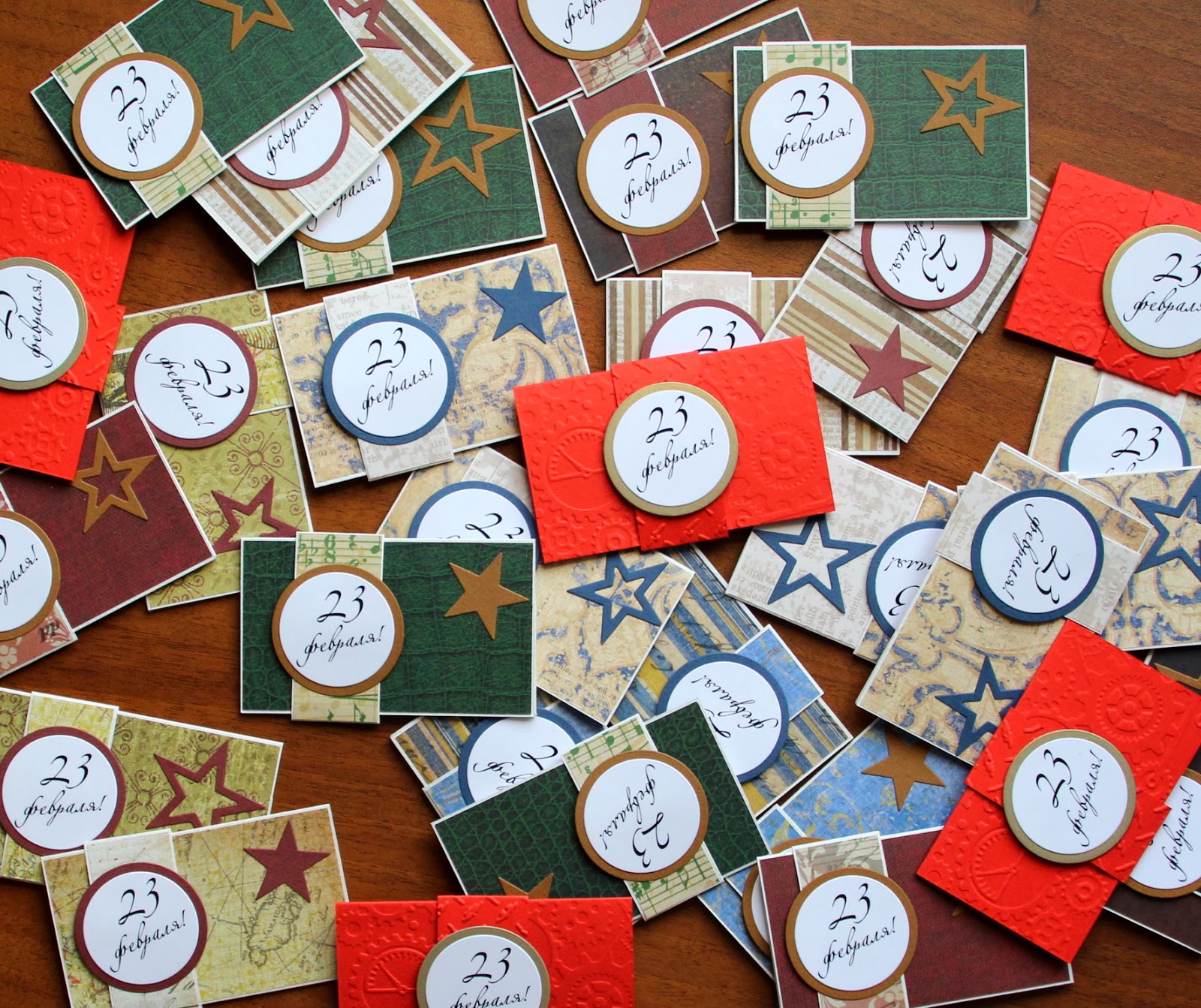 Вот и у меня случился БОЛЬШОЙ заказ))). Я сделала 30 конвертиков для подарочных сертификатов к 23 февраля. Мужчин на работе сегодня уже поздравили, поэтому могу показать: