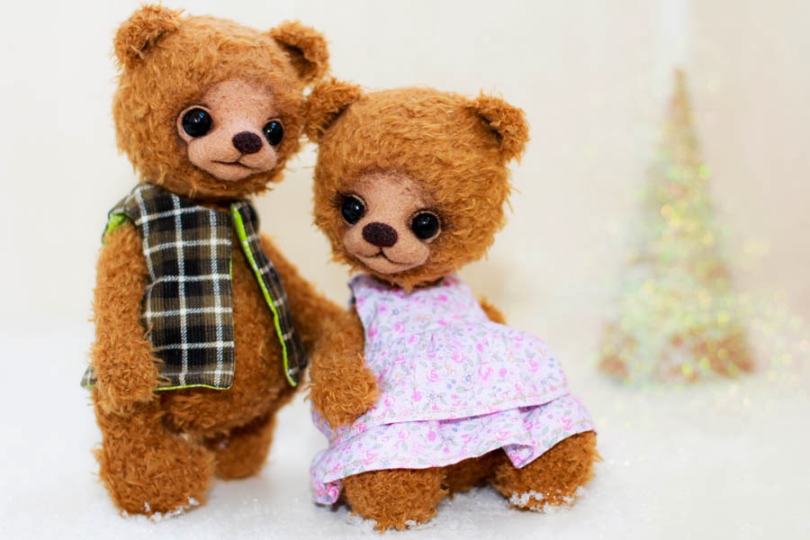 Росточком малыши 17 см. Материалы: фактурная пряжа, холлофайбер, шплинты, сухое валяние, тонировка. На девочке очаровательное хлопковое платье, на парне хлопковый пиджачок. Огромное спасибо моей мамуле на одежду)))