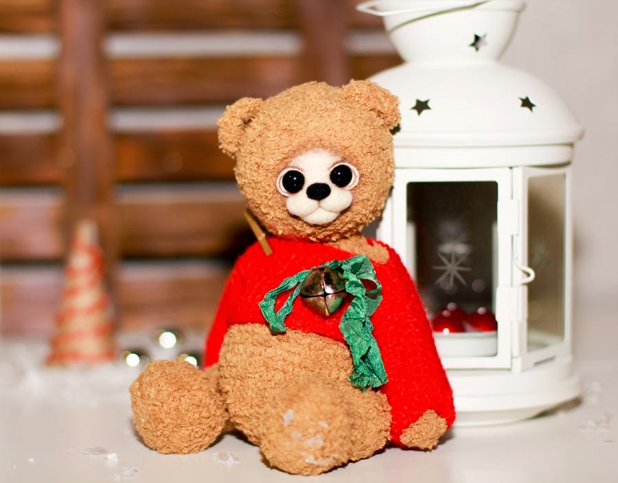 Итак, хочу познакомить Вас с первым мишуткой для выставки Элвин. Маленький мечтатель, верит в чудеса, приносить улыбки и радость в дом)))