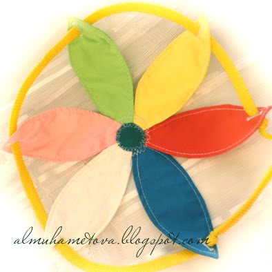 4. Творение состоит из 2х частей: лепестков и шара. К друг другу они крепяться на липучке. Липучка пришита с обоих сторон шара, т.е. собрать можно 2-мя различными способами.