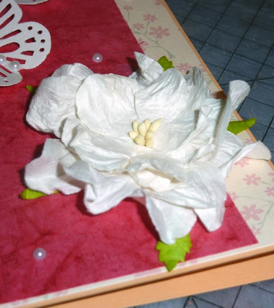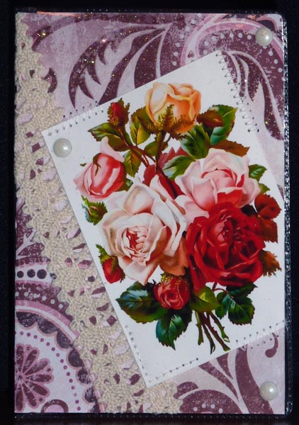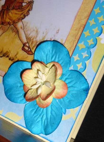 За создание этой открытки стоит сказать огромное спасибо мастерицам, которые присылали мне подарки вместе с АТС или в рамках ПИФа, т.к. большинство материалов именно подарочные: тисненый фон, "окошки" с тисненым цветочным рисунком, картинка, и два плоских цветочка.