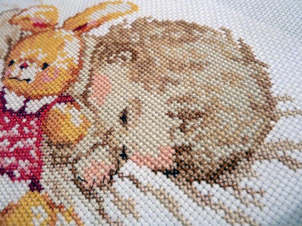 Сначала хотела дополнить метрикой, имя и дата рождения, но после окончания вышивки решила, что это только испортит общую картину.