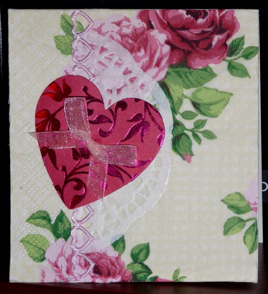 Не смотря на это, скоро будет рассылка очередных обменных посылок на влюбленную тему. Поэтому сделала сопровождающую открытку.