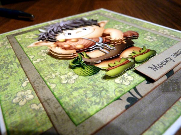 Давненько я не занималась скрапом. Вышивкой сильно увлеклась. А тут появился повод сделать открытку. Тема весенняя, но цвета получились несколько темнее.