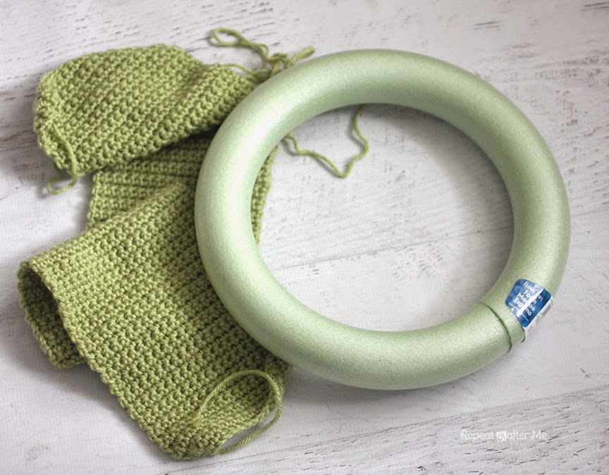 Отсюда: http://www.repeatcrafterme.com/2015/02/crocheted-spring-wreath.html