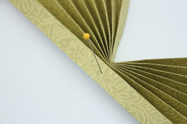 3. Полученную гармошку сложите пополам. В нижней части посередине сделайте отверстие булавкой.