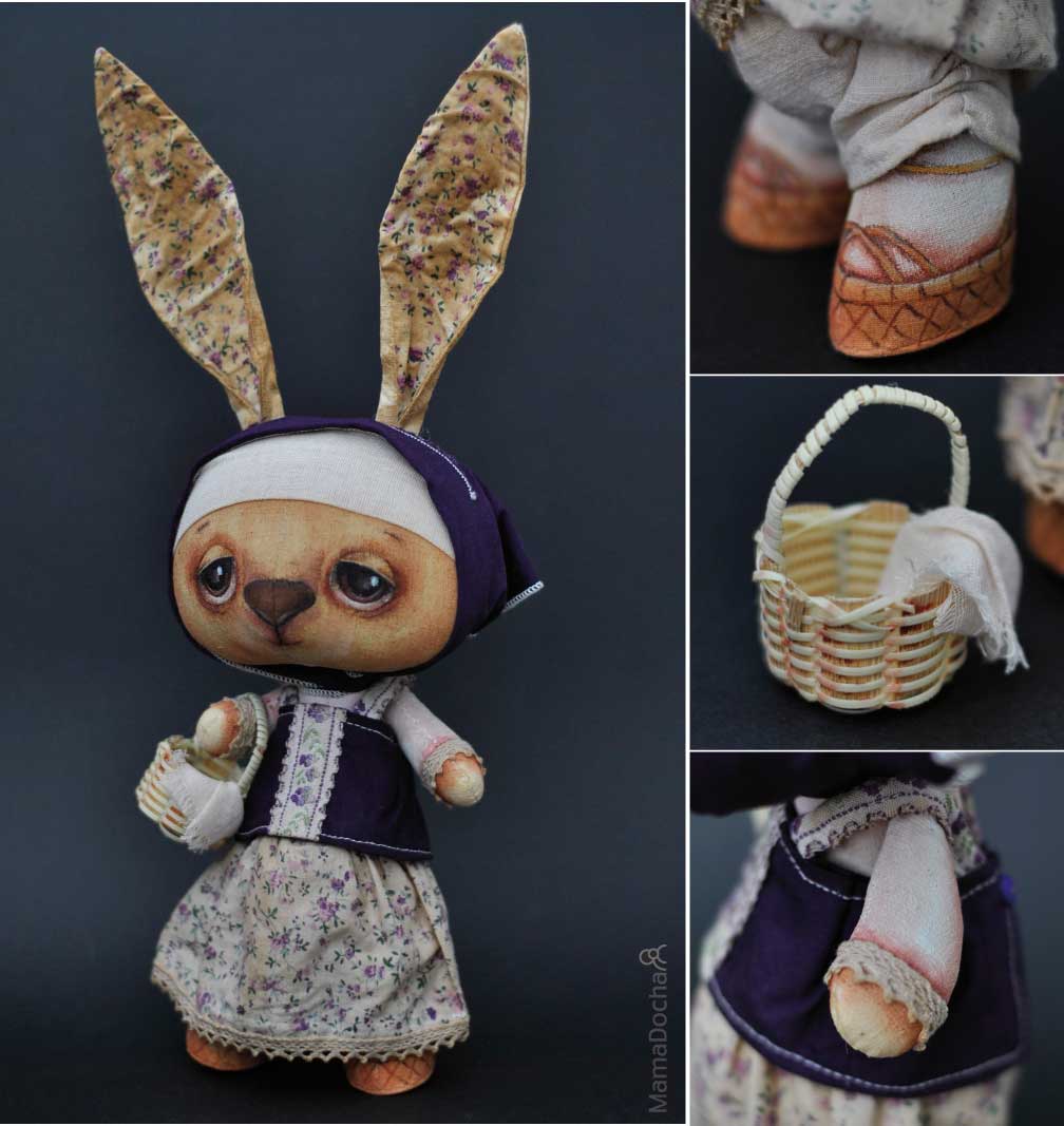 Высота работы (вместе с ушами) - 33 см. Роспись акрилом и маслом. Аксессуар - корзина с платочком. Автор - доча Аня.
