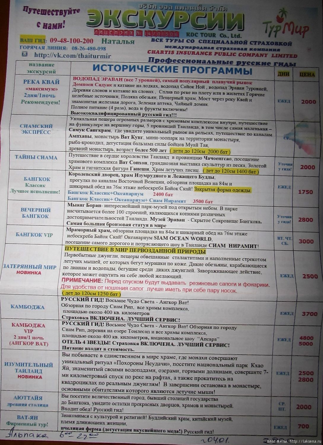 В этом году посетили совсем немного экскурсий, но прайсы со всех окрестных турагентств для информации собрали.