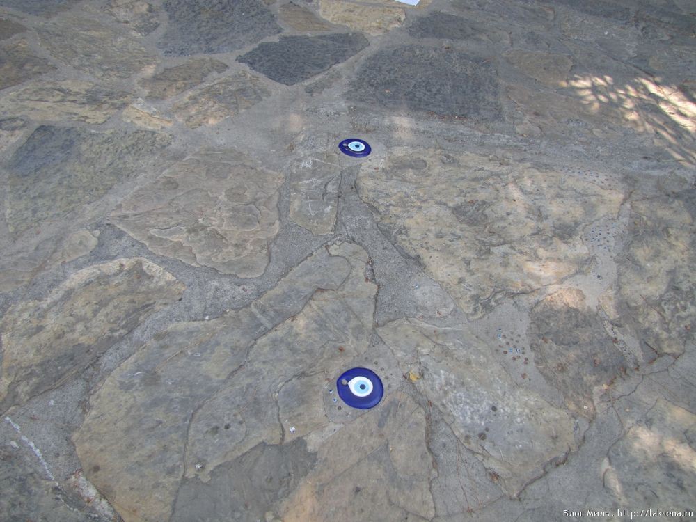 В Турции существует общепризнанный оберег (талисман) под названием Nazar Boncuk или в просторечии «назар», который имеет форму синего глаза. Существует две красивые истории, которые обычно рассказывают продавцы этого турецкого оберега. Первая гласит о том, что такой талисман вручила своему возлюбленному Фатима (дочь пророка Мухамеда), провожая мужчину в долгий, полный опасностей поход. По этой причине этот амулет часто называют «глазом Фатимы». Вторая легенда выглядит более правдивой. Люди Востока были смертельно напуганы последствиями первого крестового похода, принесшего на их земли невероятные разрушения и горе. Общеизвестно, что крестоносцы часто обладали светлыми, по большей части голубыми радужными оболочками глаз. Поэтому турецкий амулет копирует глаз европейца, словно защищая темноглазых восточных жителей от козней дьявола, сглаза или проклятия, также недобрых поступков людей ( читай прямым текстом — европейцев). А на самом деле, родиной этого амулета считается Египет, где изображения глаза были начертаны на стенах усыпальниц в пирамидах царей за тысячи лет до нашей эры.