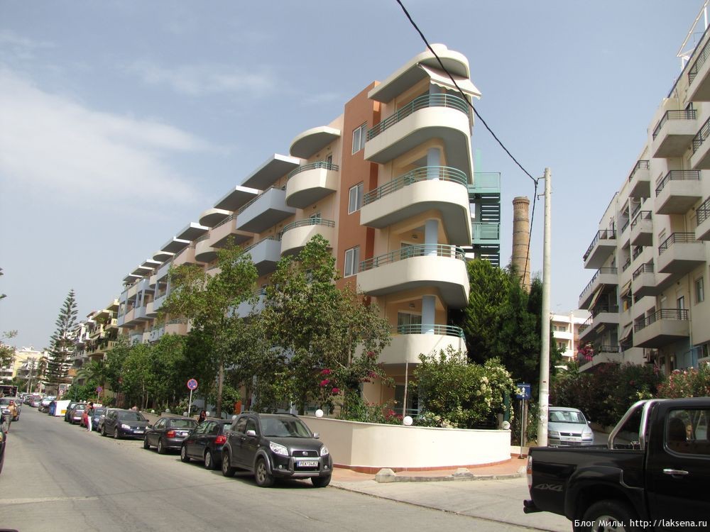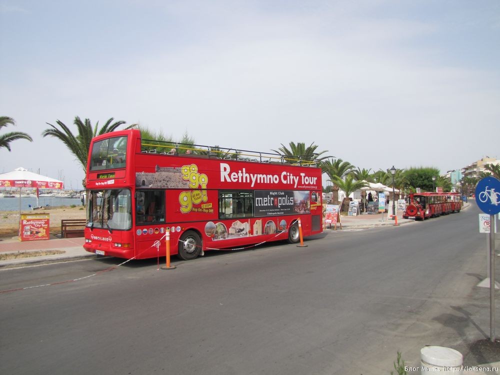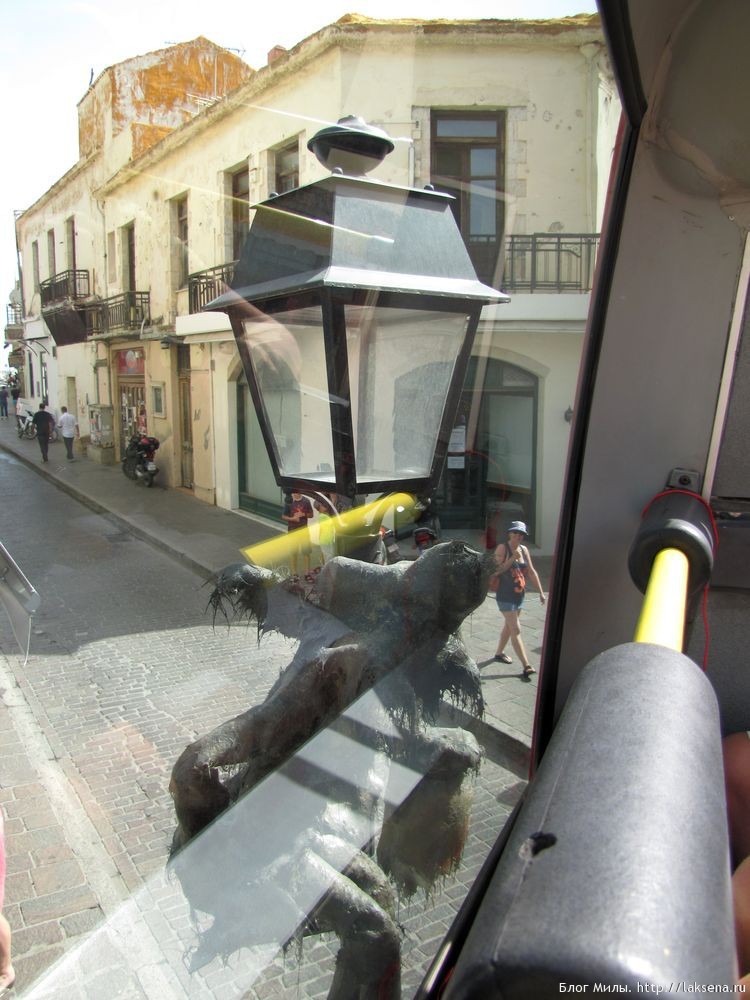 Автобус начинает свое движение по улице Элефтериос Венизелос вдоль набережной до порта, По узким улочкам большой автобус разворачивается с трудом, но поразительной точностью.
