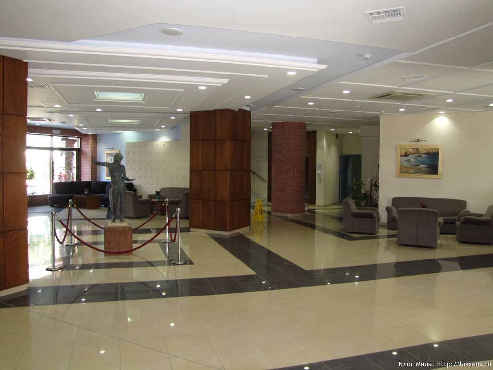 Холл отеля просторный, с ресепшеном, несколькими уголками для встреч и ожидания, интернет уголком и даже статуей. Персонал на ресепшене и в других местах на русском языке не говорит, только английский.