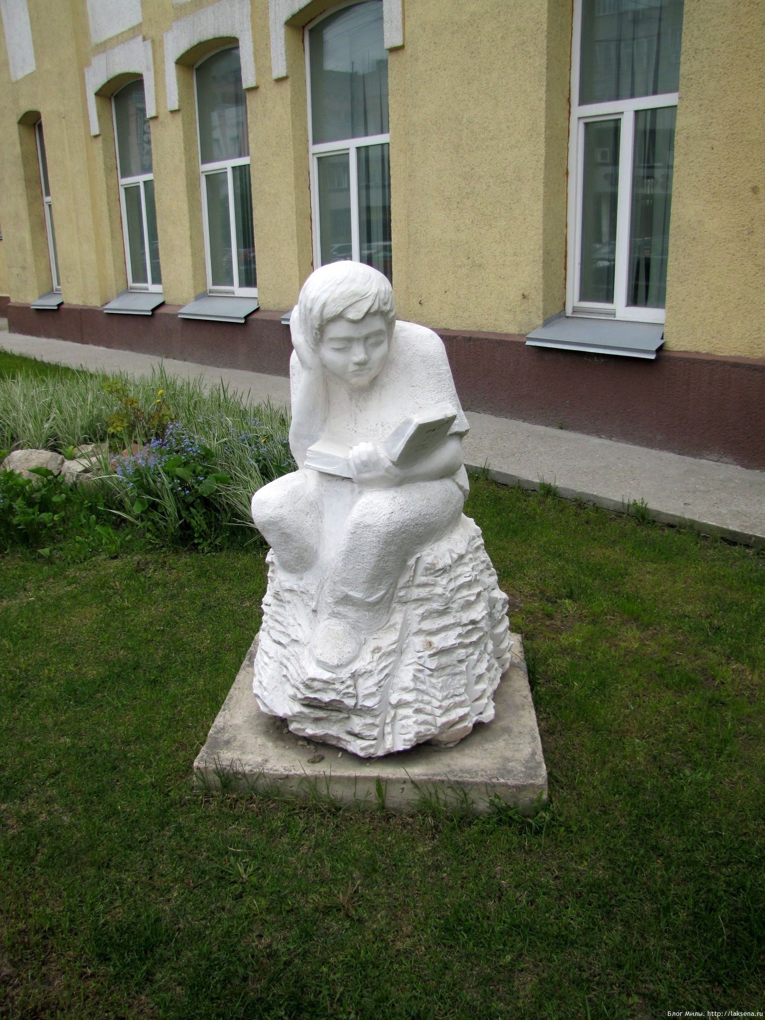 В самом начале Серебренниковской стоят каменные скульптуры мальчика Сережи и чуть дальше – мальчика с книгой.