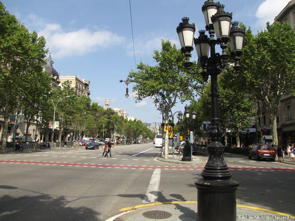 Наиболее известный из районов Эшампля – т.н. Правый Эшампль. Его центральная улица – знаменитый проспект Грасия (Passeig de Gràcia). По этому проспекту как по бульвару не погуляешь – всё-таки главная дорога, она довольно загазована, но стоит обратить внимание на интересные фонари со скамьями, созданными по эскизам Пера Фалькеса (Pere Falqués, 1906 г.),